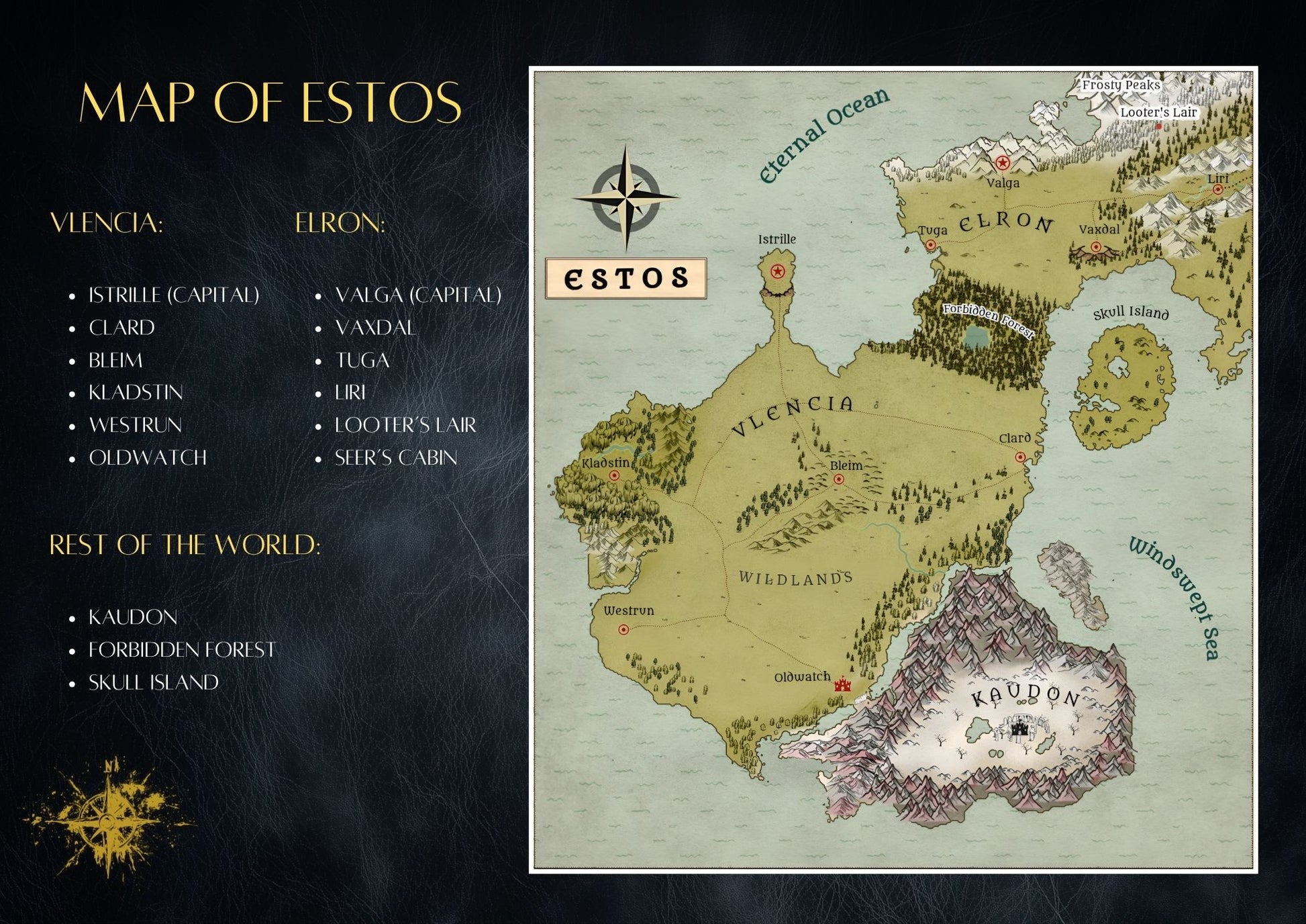 + The Map of Estos: Chart your journey through a land of myth and mystery.